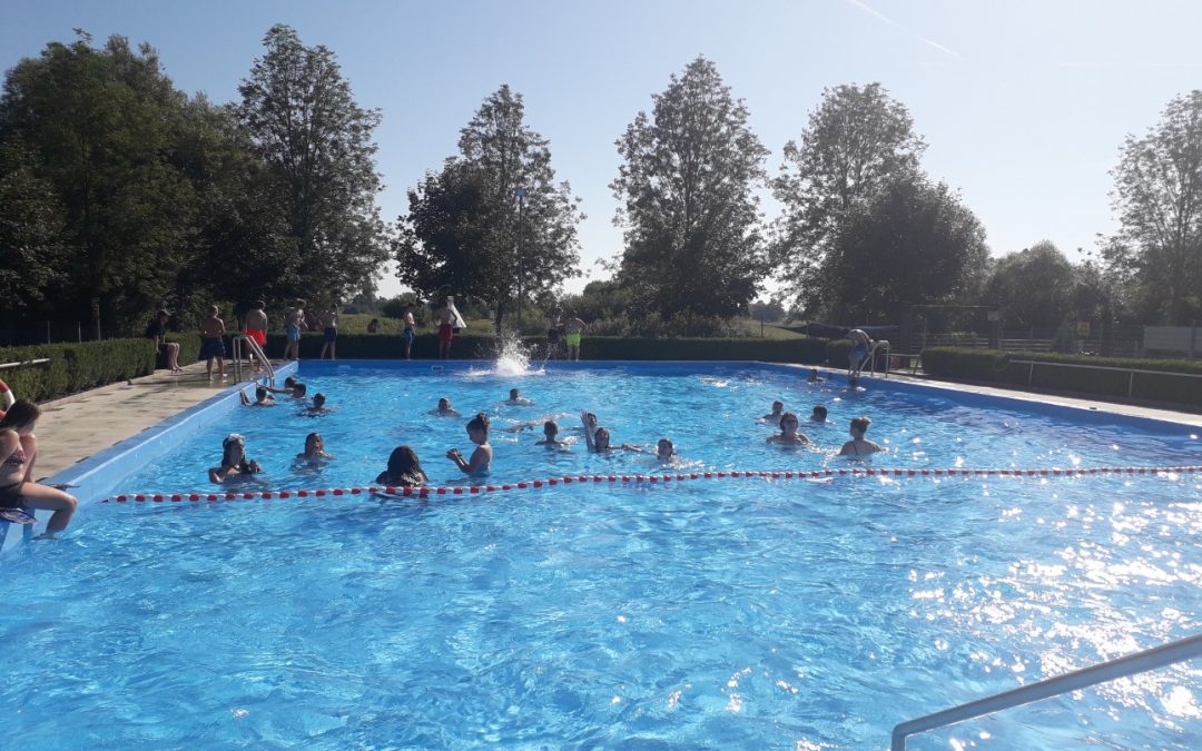 Wie jedes Jahr zum Schuljahresende besuchte die Mittelschule bei strahlend blauem Himmel und großer Hitze das Freibad in Niederleierndorf. Nach einer kurzen Wanderung durch die Laaberauen erreichten die Kinder flott das Schwimmbad und stürzten sich mit Freude in das kühle Nass. Nach ausgiebigem Schwimmen, Tauchen, Rutschen und Spielen gab es ein Eis, eine leckere Pizza oder Pommes von Helga und Christa aus dem Kiosk. Ein erholsamer „Schultag“ so kurz vor den Ferien!